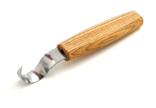The BeaverCraft SK1 spoon carving tool is a hooked knife for carving spoons, bowls, kuksas, and round, deep holes in wood for other crafts. It is a universal model of hooked knife tool, essential for cutting holes in wood surfaces.