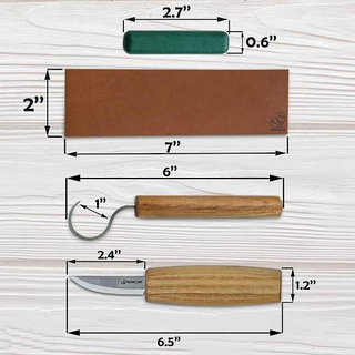 Spoon carving tools set is ideal for cutting spoons from a wood. This set includes a whittling knife and wood carving spoon hook knife. With the whittling knife, you give shape to the spoon, then with the hook knife, you cut out the spoon and smooth wood out and that’s all, your spoon is ready. The wood carving tools for cutting wooden spoons are made from durable high carbon steel and well sharpened, which allows you to cut soft and hardwood. Handles are made from Ashwood and covered with linseed oil. Leather strop with polishing compound are included to keep your blades razor-sharp.