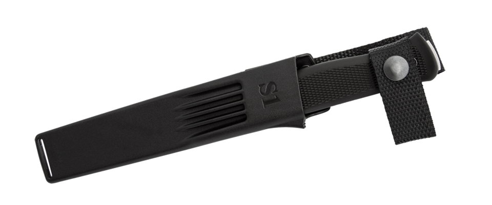 The full cover leather sheath is made from high quality black leather, and it safely protects the knife. The new zytel sheath with the two-way locking mechanism offers a simple, safe and strong combination of qualities that every user will appreciate. The one hand operated zytel sheath is also easy to keep clean.