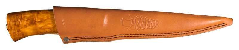 The nicely curved wood handle feels good in the hand. It is supplied with a Nordic style sheath.