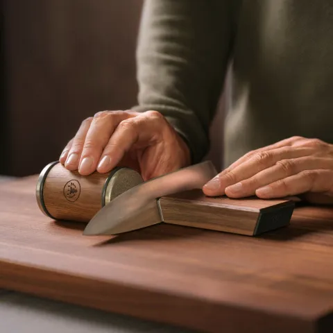 Made in Germany from solid Walnut, the HORL 3 knife sharpener is efficient, precise, and built to last a lifetime.