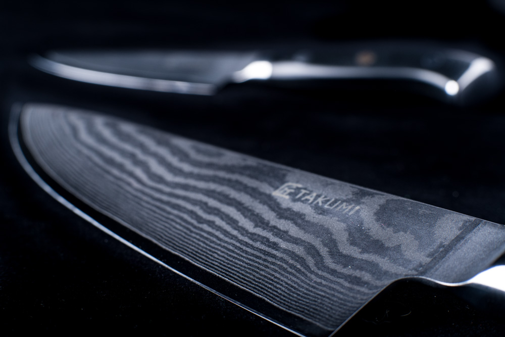 Made with 67 layers of folded steel, Takumi knives don’t only look beautiful, they are built to last. The traditional method of steel folding, which finds its origins in Japanese sword making, burns away impurities in the metal. This leaves behind a pure, durable, and flexible blade. The handle of each Takumi knife also features a mosaic inlay – the mark of the craftsman.