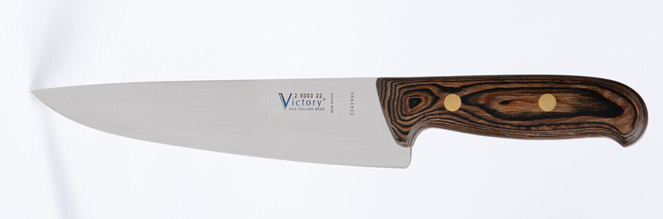 At Victory Knives, we’ve been crafting blades in New Zealand since 1927, trusted for generations in commercial kitchens, processing plants, fishing vessels, and by butchers who know the value of a tool built to last. This straight chef’s knife carries that same tradition into your hands, refined for today’s kitchen.