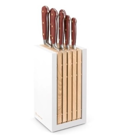 The knife block itself is a real gem, with its elegant oiled ash insert. It contains a complete assortment of Wusthof Classic Colour Tasty Sumac knives, including :